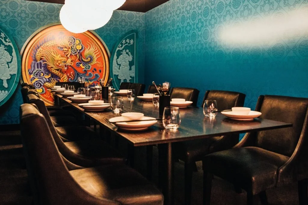 For an Asian-fusion dining experience, head to White + Wong's. This vibrant and stylish restaurant offers unique flavor combinations inspired by street foods from China, Thailand, and Malaysia. The modern and oriental space features private rooms that can host anywhere from 12 to 60 people, making it perfect for group dining.